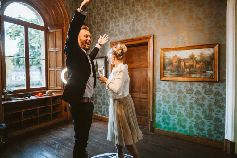 Sie stellen sich in die Mitte des Drehtellers (max. 3 Personen), die Kamera fährt eine oder zwei Runden um den Drehteller herum und filmt die Gruppe in Slow-Motion (Zeitlupe). Das fertige Video wird digital gespeichert und kann geteilt werden. Nach dem Event bekommt der Gastgeber alle Videos zum Download zur Verfügung gestellt.